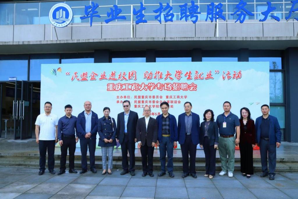 此外,“民盟企业进校园,助推大学生就业”专场招聘会在我校举行。此次专场招聘会由民盟重庆市委会、重庆工商大学主办,民盟重庆市委会企业家联谊会、重庆工商大学招生就业处承办。近30家盟员企业,共为应届毕业生提供就业岗位300余个,涵盖金融、经营管理、新媒体、物流仓储、科技、通讯、人力资源管理等行业。杜惠平、民盟重庆市委会专职副主委蒙格丽,民盟市委会副秘书长、办公室主任洪满斌等领导,学校党委书记李志雄,校长温涛,党委副书记宋豫一行到招聘现场考察招聘会开展情况。杜惠平一行在部分企业招聘台前,与工作人员亲切交流,详细询问企业用工需求和现场招聘情况。招聘会现场气氛热烈,展位前人头攒动,同学们纷纷就工作内容、发展空间、薪资待遇等问题向招聘单位进行咨询。