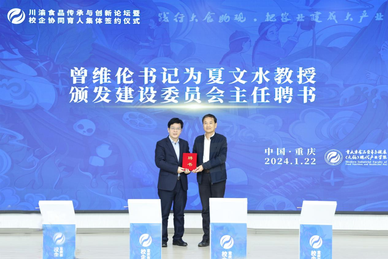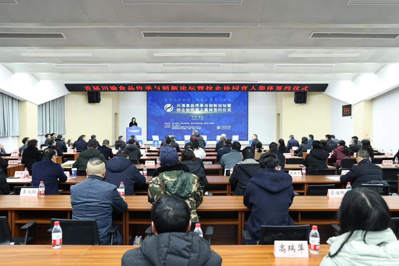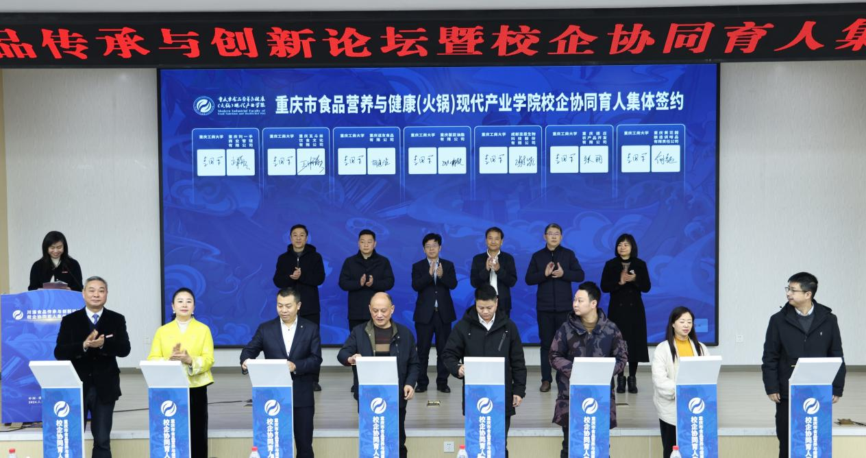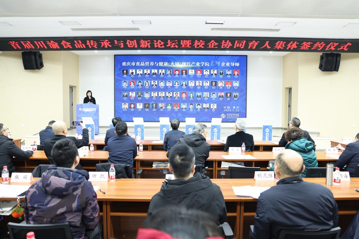 1月22日上午,由我校主办,国家级环境与资源化学技术实验教学示范中心和重庆市食品营养与健康(火锅)现代产业学院联合承办的川渝食品传承与创新论坛暨校企协同育人集体签约仪式在学校明德楼1019会议厅举行。