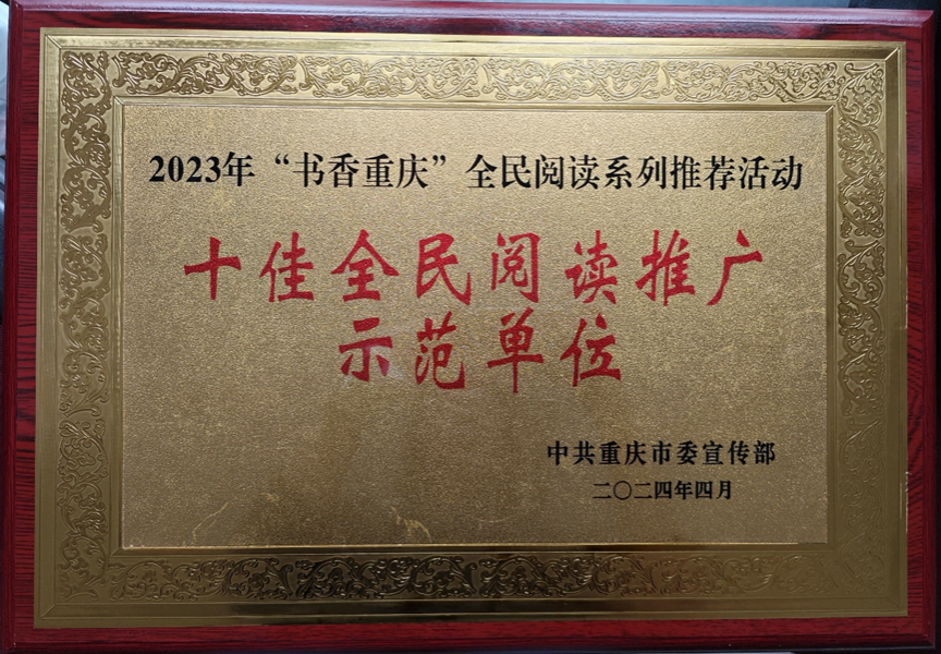 4月10日,2024年“书香重庆·全民阅读盛典”活动在九龙坡区人民政府九龙礼堂举行,我校图书馆继2021年荣获“书香校园”的荣誉之后,再获“十佳阅读推广示范单位”称号。