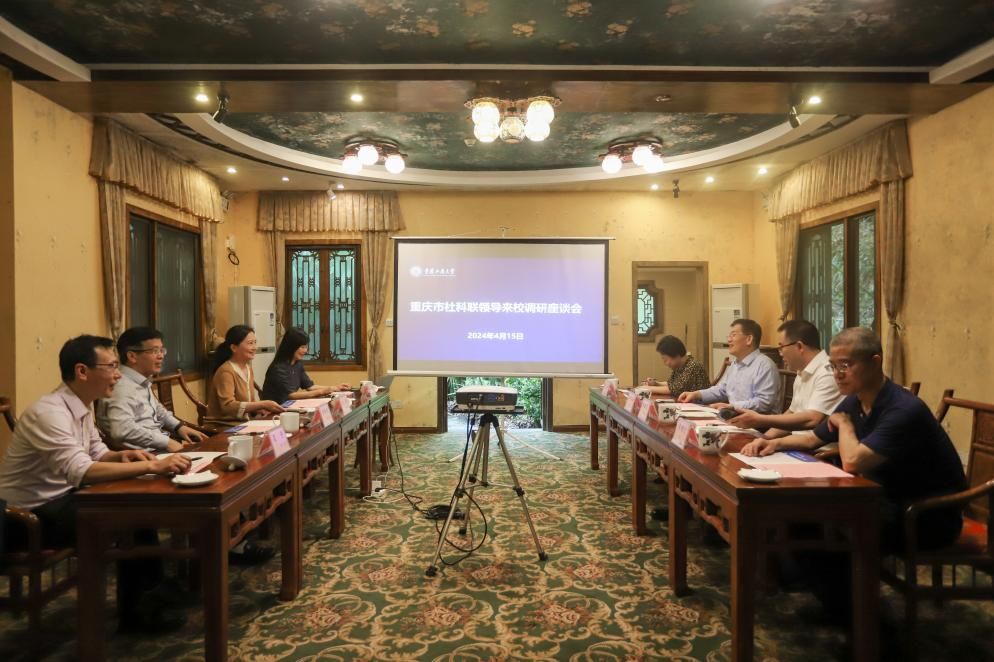 4月15日下午,重庆市社科联党组书记、副主席李保海一行来我校调研。学校党委书记曾维伦,党委常委、副校长任毅及科研处等单位负责人陪同调研并参加座谈会。