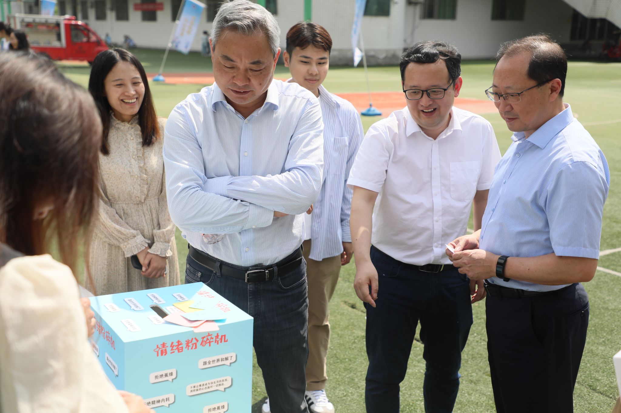 4月19日下午,重庆工商大学的南区篮球场上,一场别开生面的“寓”见美好——平安校园游园会吸引了众多师生的目光。此次活动由学校保卫处、学生处与数学与统计学院联合主办,旨在加强师生的安全教育与法制教育,共同营造一个安全、和谐、美好的校园环境。学校党委常委、副校长张波、李国军到现场与师生们一同参与活动。