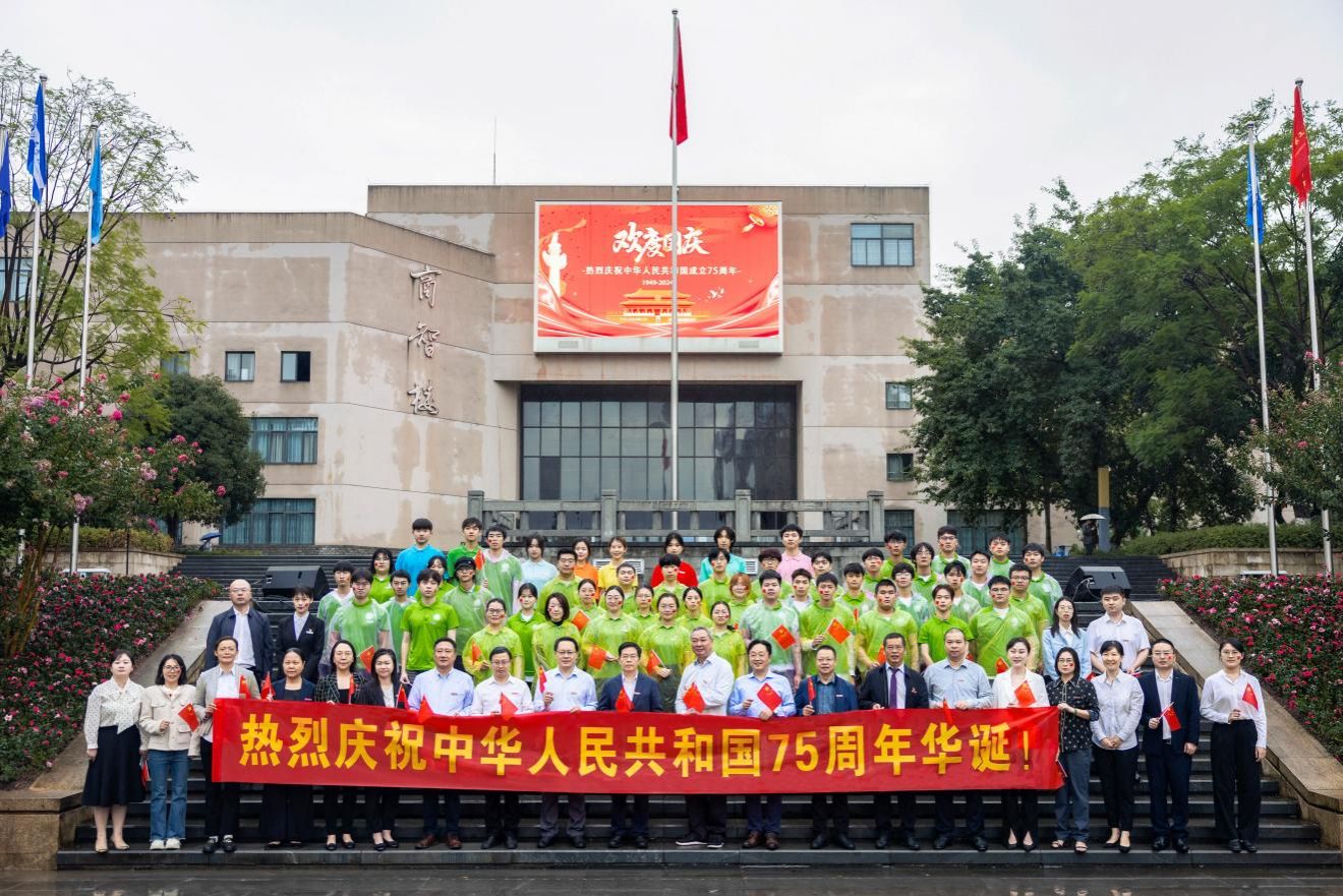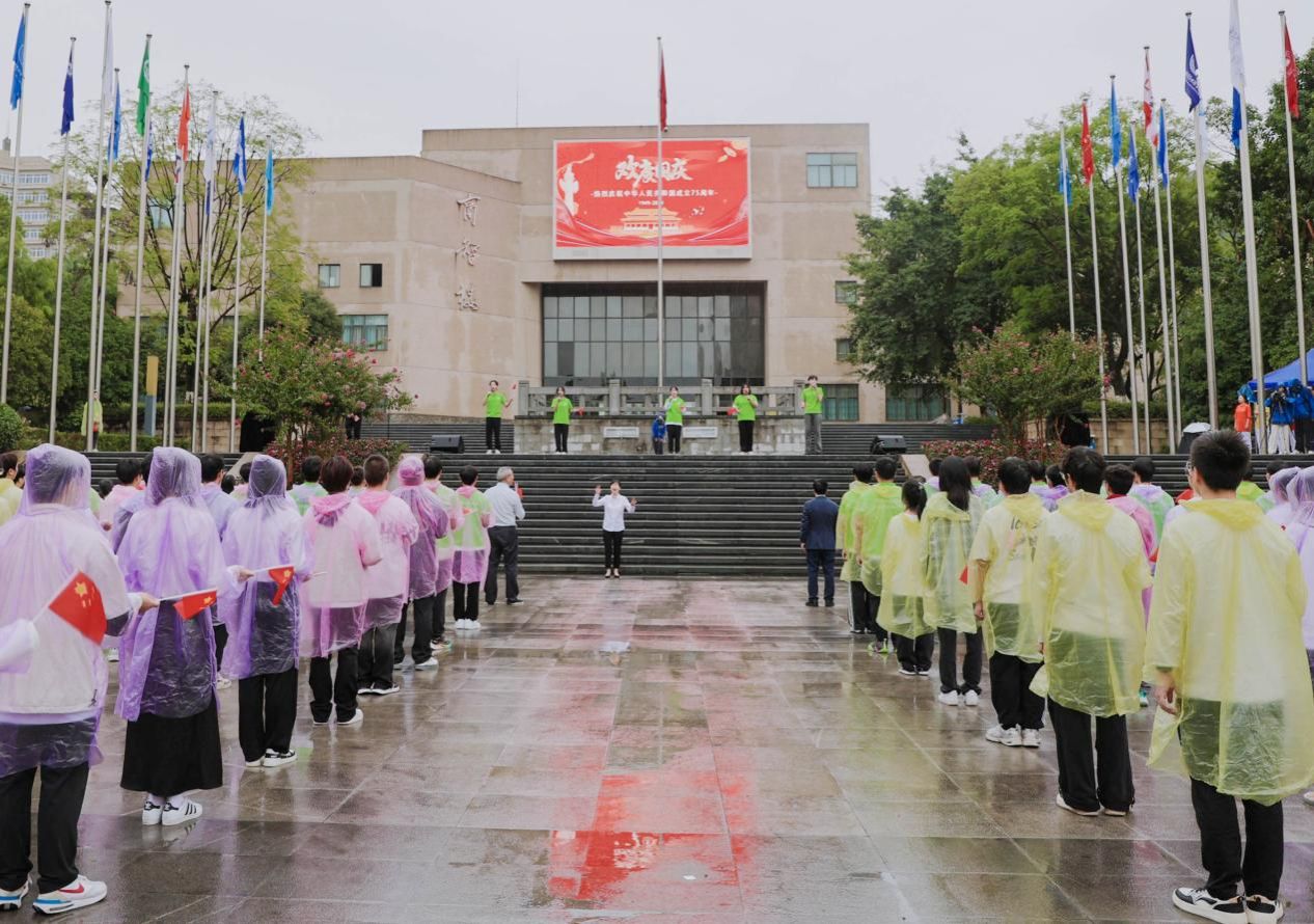 为热烈庆祝中华人民共和国成立75周年,致敬伟大祖国,厚植爱国情怀,弘扬民族精神,10月1日上午,学校在含弘广场隆重举行国庆升旗仪式。学校党委书记曾维伦出席并讲话,学校党委常委、副校长李国军参加升旗仪式。