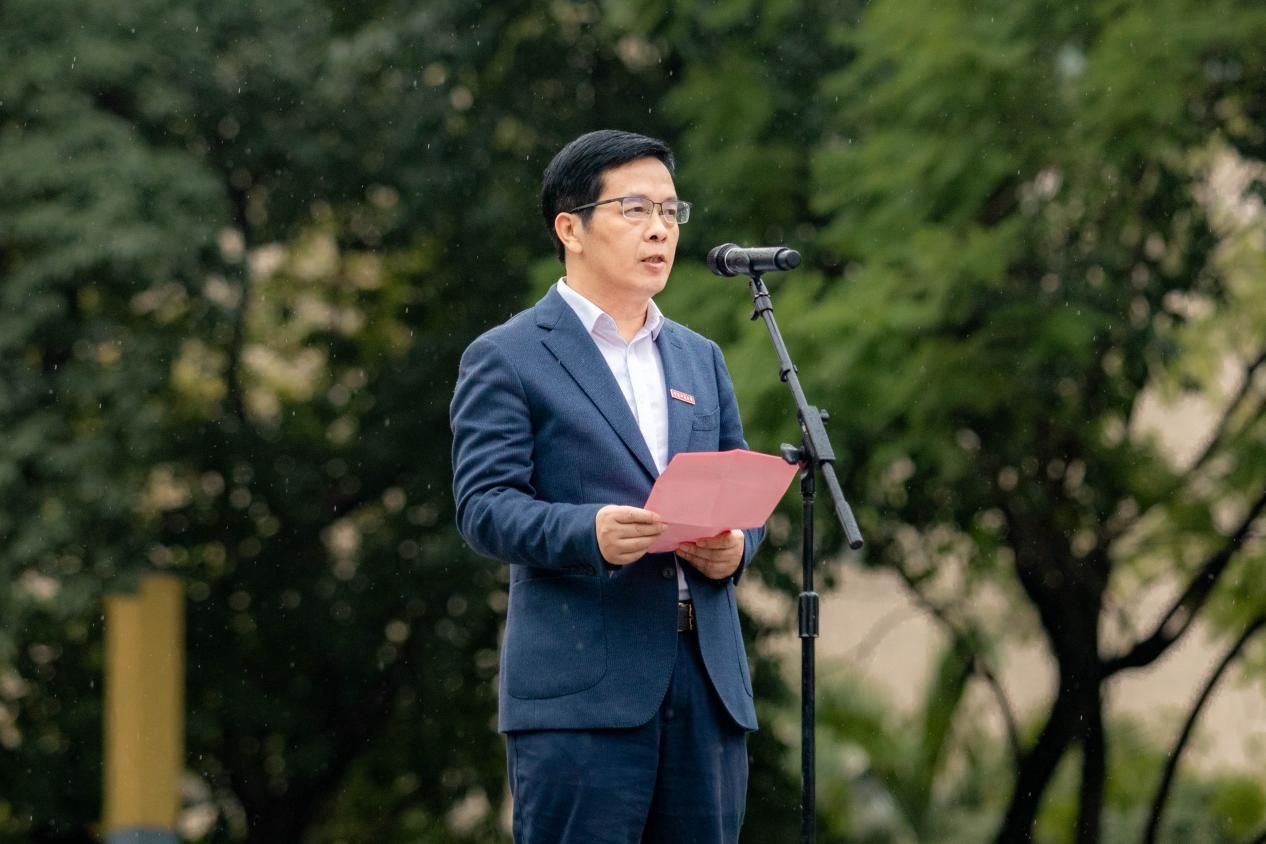 曾维伦代表学校党委和行政向全校师生员工致以节日的问候和美好的祝愿,并代表全校师生员工祝福伟大祖国繁荣昌盛,国泰民安。