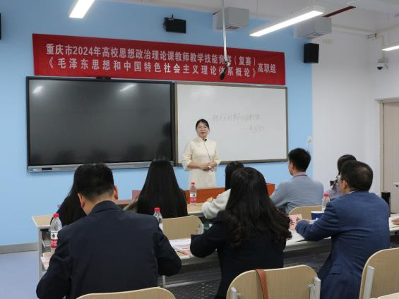 10月13日上午,由重庆市委教育工委、市委宣传部、共青团市委主办,市高校思想政治理论课教学指导委员会“毛泽东思想和中国特色社会主义理论体系概论”课分教学指导委员会、重庆工商大学承办的重庆市2024年高校思想政治理论课教师教学技能竞赛《毛泽东思想和中国特色社会主义理论体系概论》复赛在我校涵智楼举行。来自重庆市24所本科院校、30所高职院校的54名选手参加了本次比赛。