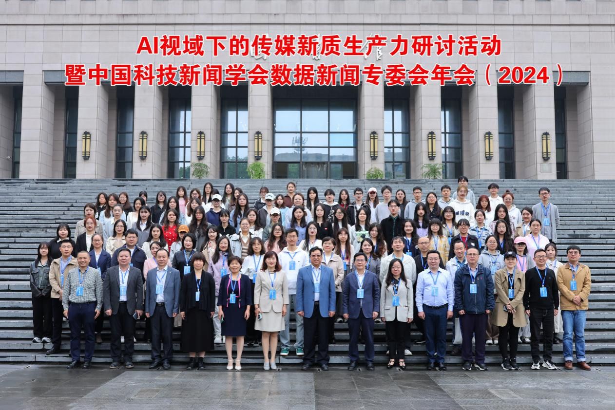 10月13日,“AI视域下的传媒新质生产力研讨活动暨中国科技新闻学会数据新闻专委会年会”在重庆工商大学南岸校区成功举行。本次论坛由中国科技新闻学会和重庆工商大学联合主办,文学与新闻学院承办。全国政协常委、教科卫体委员会副主任、中国科技新闻学会理事长徐延豪教授,国务院学位委员会新闻传播学评议组召集人、中国社科院大学新闻传播研究所长胡正荣教授,以及来自复旦大学、武汉大学、中国传媒大学等高校的百余位专家学者、师生齐聚山城,共同探讨人工智能技术对传媒行业的深远影响。