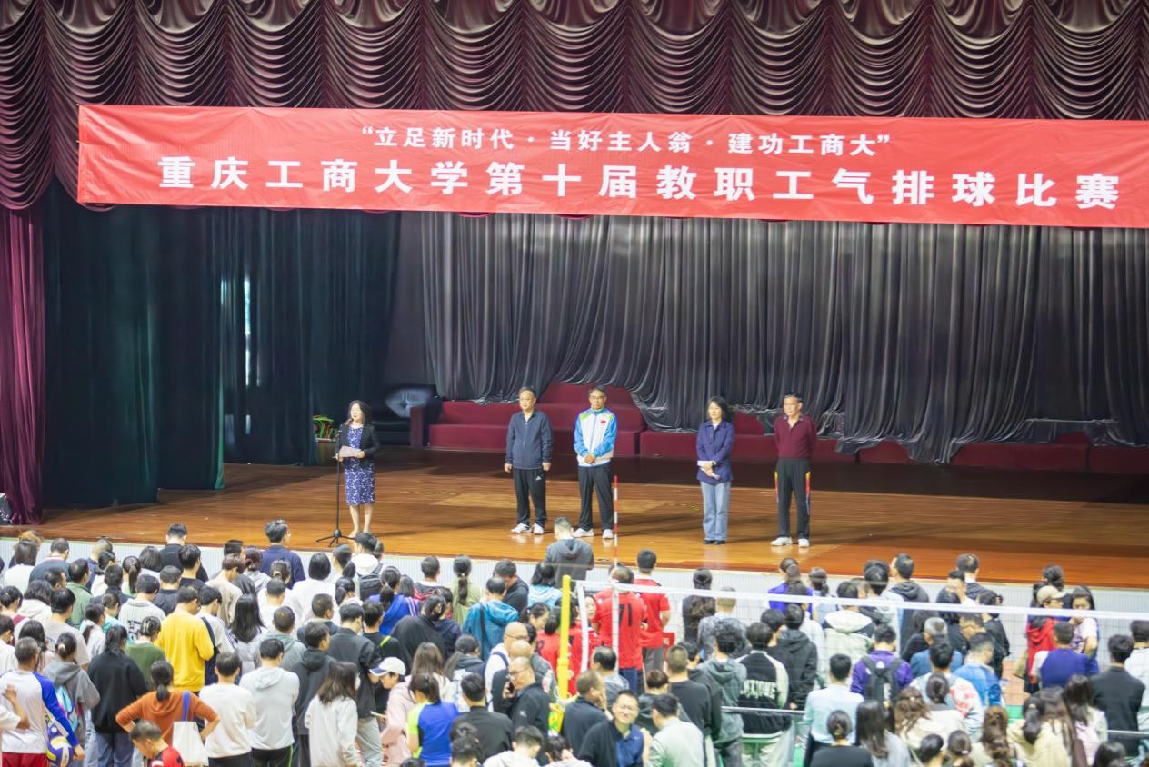 10月18日下午,重庆工商大学第十届教职工气排球比赛开幕式在体艺馆举行。本次比赛由学校工会举办,体育学院和教职工气排球协会协办。学校党委副书记、工会主席宋豫,体委办公室主任、体育学院院长范文杰,裁判长张新中,教职工气排球协会会长蔡继荣,各学院书记、部门工会主席参加了开幕式,学校工会常务副主席王静主持开幕式。