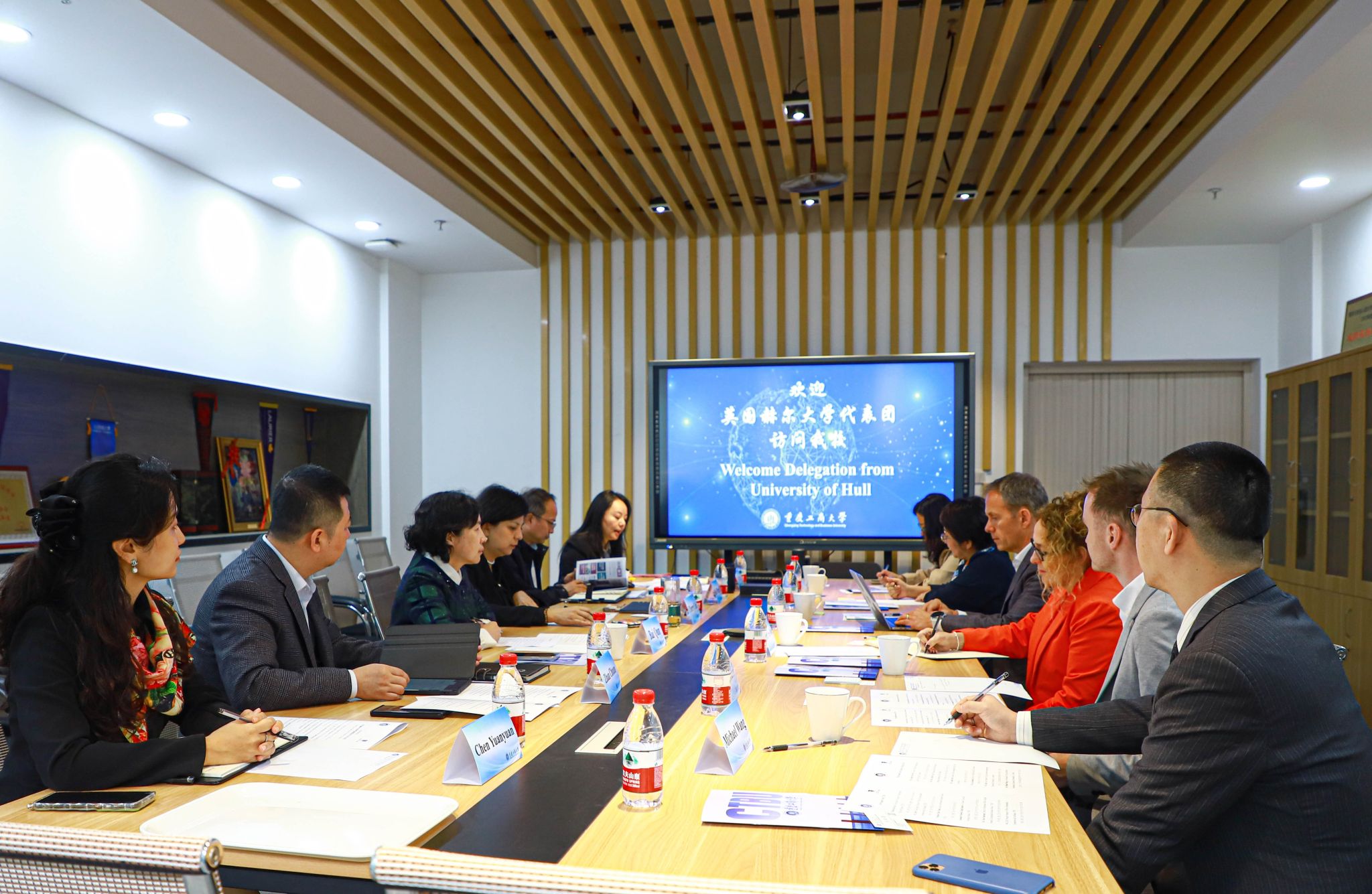 柏群对赫尔大学代表团一行来访表示了热烈的欢迎,并从历史沿革、学科建设、人才培养等方面介绍了我校的基本情况。柏群感谢赫尔大学在中外合作办学上对我校的支持,希望能探讨拓宽交流领域,全面深化合作。Peter Andrews分享了赫尔大学商学院教育理念、学科优势以及在国际人才培养的卓越成就,并诚挚邀请我校领导访问赫尔大学。