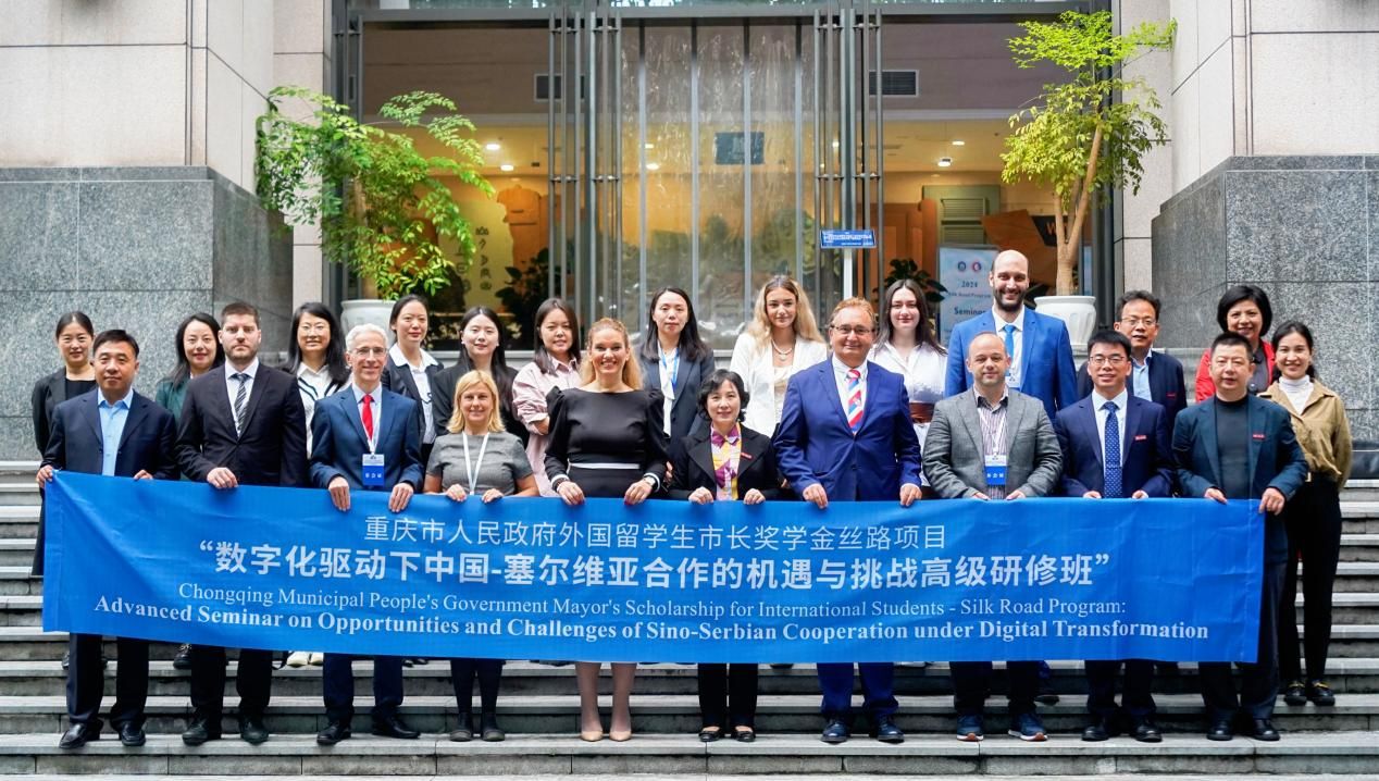 11月11日上午,2024年重庆市人民政府外国留学生市长奖学金丝路项目——“数字化驱动下中塞合作的机遇与挑战高级研修班”在我校图书馆S116智慧教室开班,该项目由学校国际商学院和留学生院联合承办。