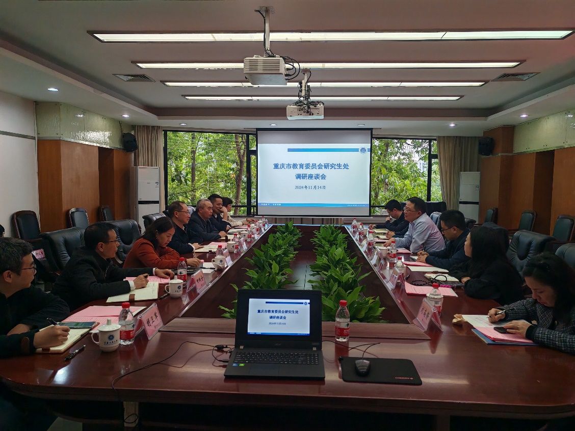 11月14日,重庆市教育委员会学位管理与研究生教育处张永祥一行到校调研我校学科建设与研究生教育工作,调研座谈会在厚德楼3020会议室举行。学校党委常委、副校长张波出席座谈并主持会议,学校发展规划处、研究生院、人事处、科研处、财务处、教务处等职能部门、部分学院及科研平台负责人参加了座谈。