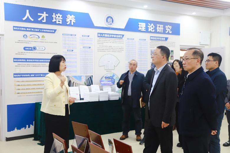 张永祥一行首先参观了校史馆,并调研了经济学拔尖人才培养基地。参观调研过程中,张波介绍了学校的基本情况及历史沿革,经济学院院长宋瑛介绍了学校经济学优势学科人才培养情况,张永祥对学校学科建设和研究生教育的成果表示充分肯定。