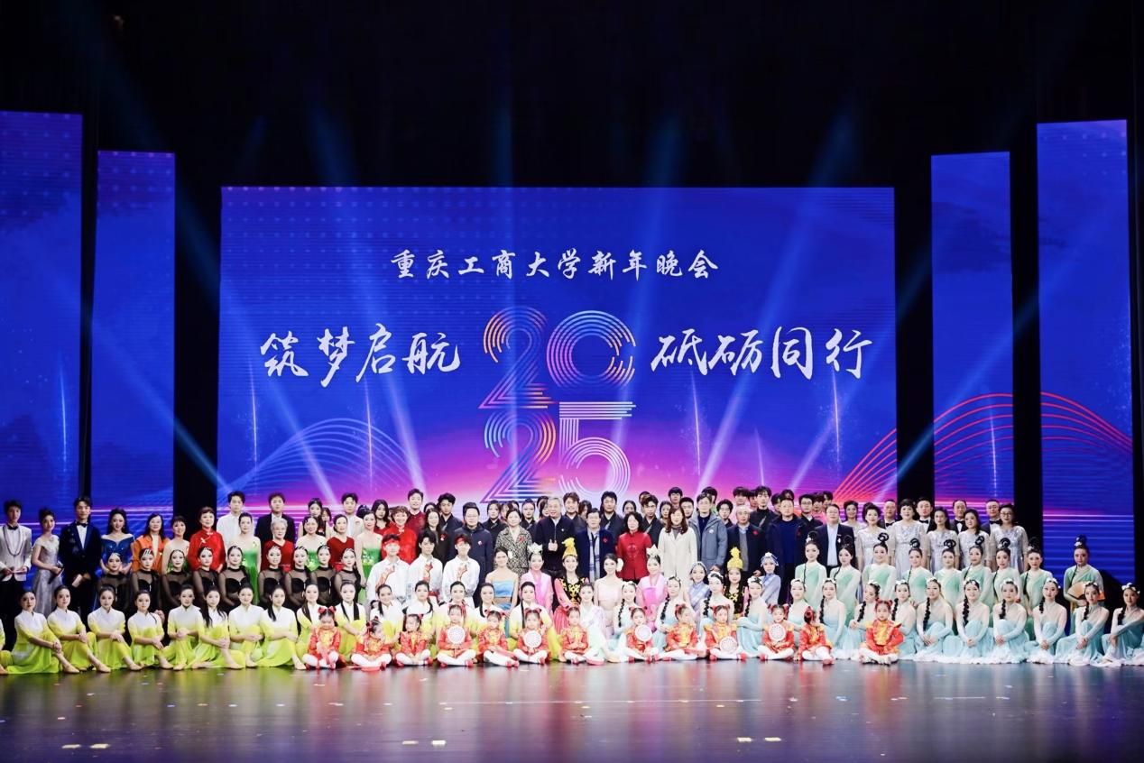 12月26日,学校“筑梦启航 砥砺同行”2025新年晚会在南岸校区剧场隆重举行。学校党委书记曾维伦,党委副书记宋豫,党委常委、副校长李国军,党委常委、纪委书记、监察专员张海燕,党委常委、副校长任毅,学校相关职能部门、学院负责人与全校1000余名师生现场观看晚会。校团委官方抖音号对晚会进行全程直播,师生、校友、学生家长在线观看人数达2.6万人,获赞12.4万,重工商大人线上线下欢聚一堂,共享视听盛宴,启航新年。