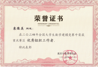 经过激烈的角逐,我校代表队获本科组全国一等奖1项(全市7个)、二等奖2项,获重庆市一等奖8项、二等奖19项。这是学校近五年在该赛事上首次获得全国一等奖。数学与统计学院院长陈义安获评重庆赛区优秀教练员,数学与统计学院袁德美教授获评重庆赛区优秀组织工作者。