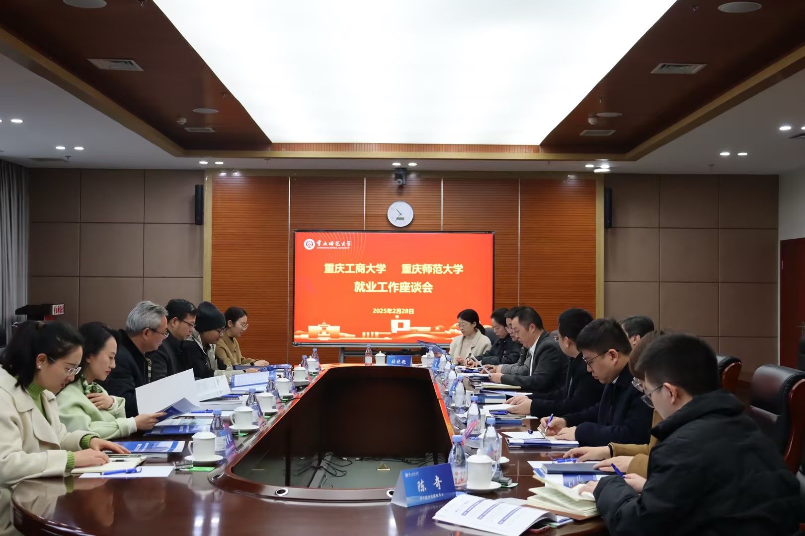 我校党委常委、副校长李国军,招生就业处处长钟增胜、副处长周婷,重庆师范大学副校长付文升,招生就业处处长冉久飞、副处长王睿,地理与旅游学院党委副书记熊宇,初等教育学院党委副书记汤海鹏及两校招就处部分就业工作人员在会议室参加座谈会。王睿主持座谈会。