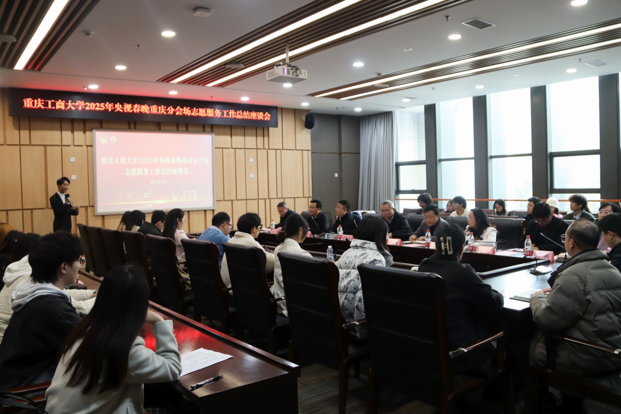 为全面总结2025年央视春晚重庆分会场志愿服务工作,表彰先进,推动我校志愿服务工作高质量发展,3月12日下午,我校在图书馆第五会议室召开2025年央视春晚重庆分会场志愿服务工作总结座谈会。学校党委常委、副校长李国军,学工部、研工部、校团委及文学与新闻学院负责人,相关指导老师、服务央视春晚重庆分会场志愿者代表参会。