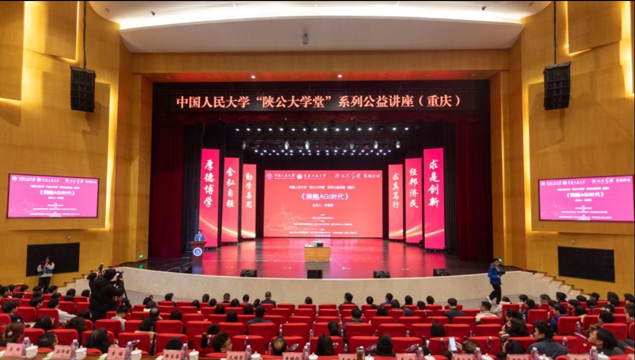 曾维伦在致辞中指出,“陕公大学堂”公益讲座是中国人民大学独树一帜的先锋课堂。本次讲座聚焦生成式人工智能、大语言模型等通用人工智能最前沿技术,是深入学习贯彻习近平总书记关于人工智能的重要论述,传承红色基因,弘扬陕公精神的生动实践。回顾历史,人民大学给予了我校建设发展大力支持。学校高度重视人工智能的发展,并积极促进与现有学科深度融合。今后也将更加主动地在中国式现代化宏大场景中谋划推进各项工作,胸怀“国之大者”,致力于培养“商工融合”应用复合型人才,为服务国家重大战略和现代化新重庆建设提供人才和智力支撑。