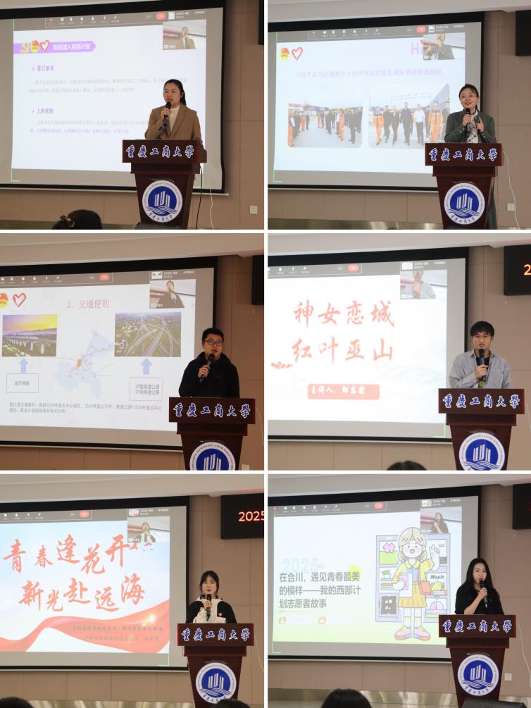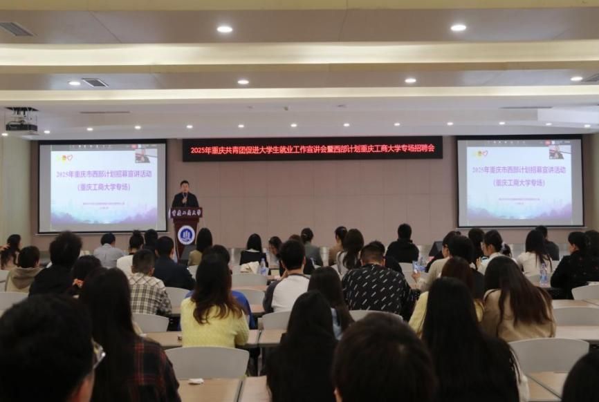 为进一步扩大大学生志愿服务西部计划的宣传度和影响力,促进高校毕业生全方位了解西部计划,引导更多有志青年“到西部去,到基层去,到祖国和人民最需要的地方去”积极投身中国式现代化建设,4月8日,由团市委主办、我校承办的2025年重庆共青团促进大学生就业工作宣讲会暨西部计划重庆工商大学专场招聘会在学生事务中心B101报告厅举行。宣讲会由校团委书记吴佑波主持。