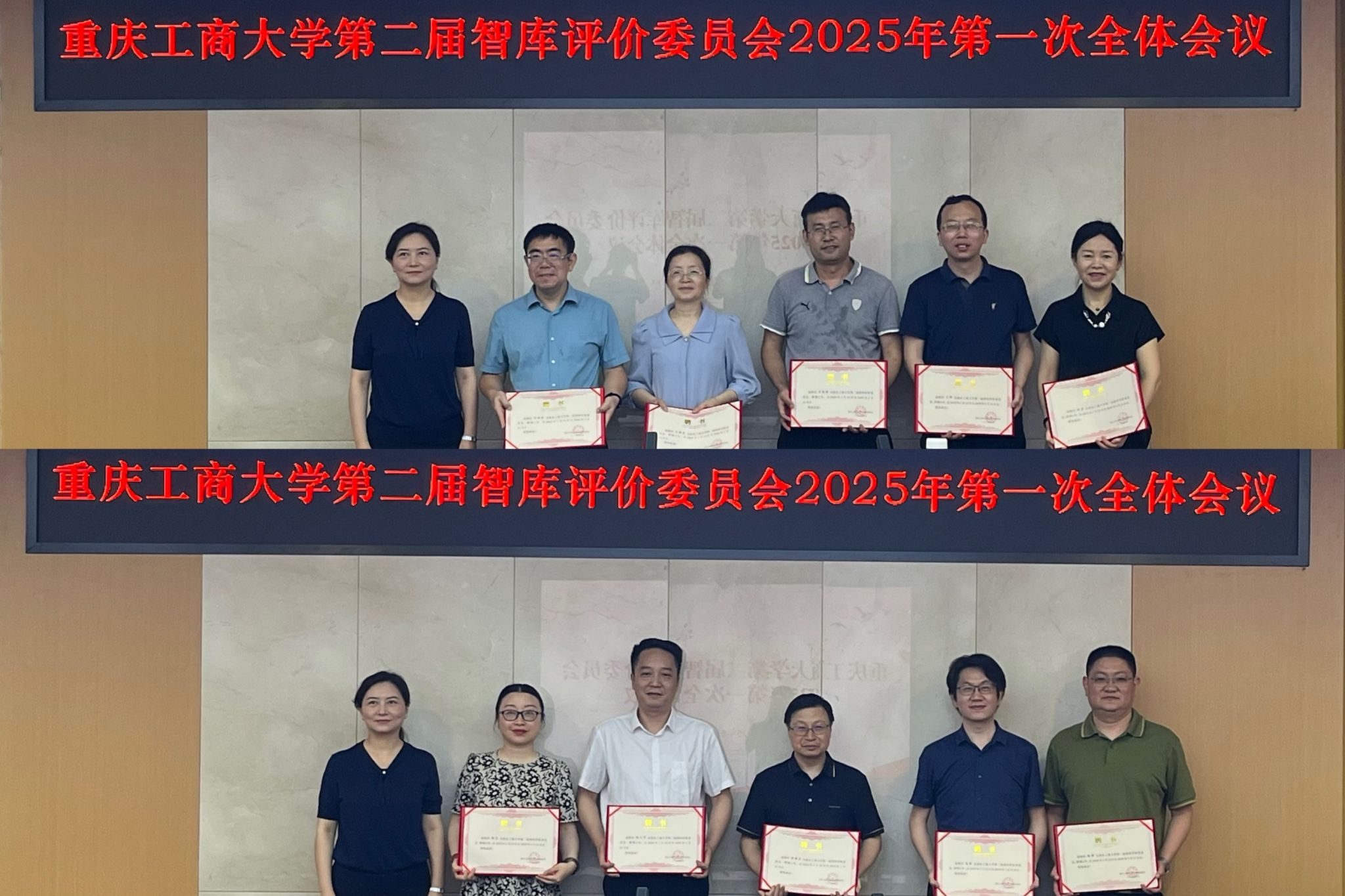 在第二届智库评价委员会成立大会暨2025年第一次全体会议上,根据《重庆工商大学智库评价委员会规程》,会议表决产生了主任委员、副主任委员,任毅教授当选为第二届智库评价委员会主任委员,杨维东教授、王兆林教授当选为副主任委员。会议为全体委员颁发了聘书。