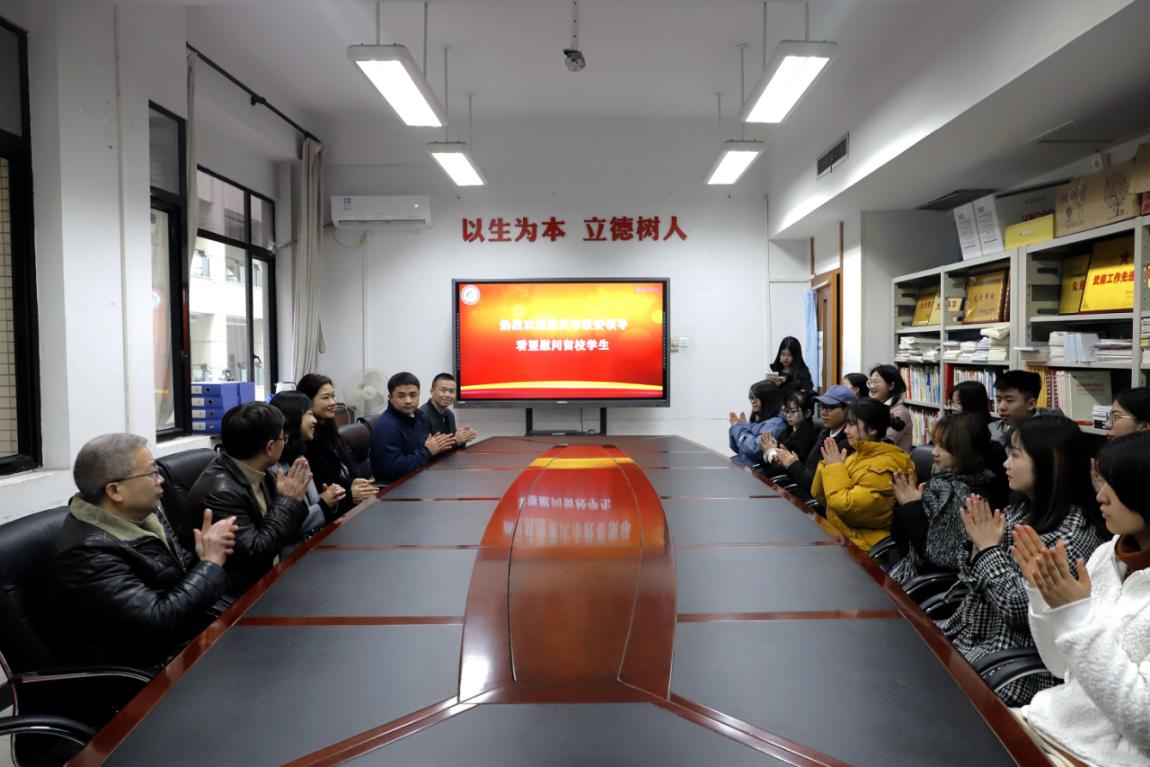 江燕副处长一行向我校部分留校学生赠送了慰问金及新春大礼包等慰问品并与大家合影留念。我校学生处相关负责同志陪同看望。