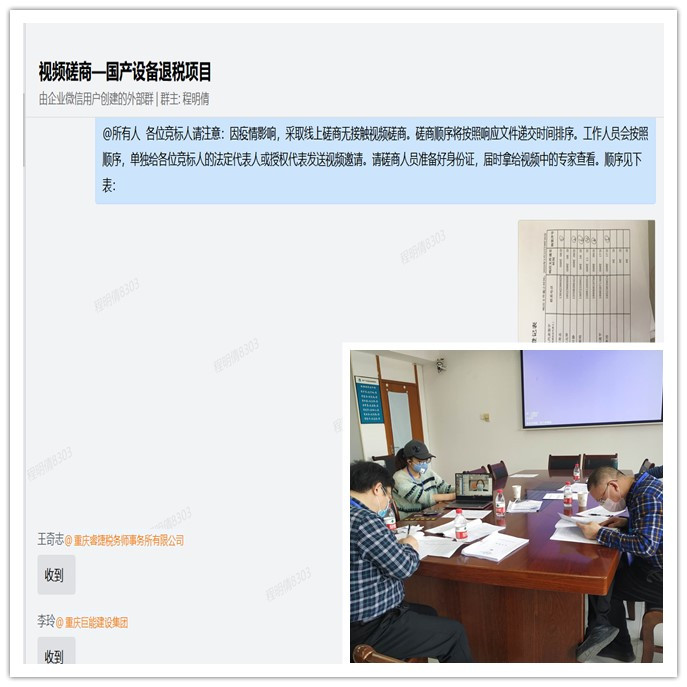 积极探索,大胆创新“互联网+”的招投标评审工作模式。在没有电子化招投标系统的情况下,做好疫情防控的同时充分利用“重庆市政府采购云平台”、“企业微信”等信息化手段,试行“供应商线上递交响应文件”和“专家线下查阅标书+供应商线上答辩”相结合的评审方式,有效减少人员聚集。近期已开展政府债券发行所需购买服务、2020-2021年外文纸质图书购置、2019年我校采购国产科教设备增值税退税服务、2020-2021图书馆数字资源购置、自助图书杀菌除尘设备购置、工程建设项目等多个急需项目的招标工作。