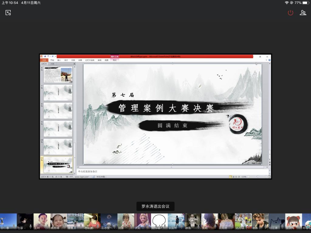 2020年4月11日上午,重庆工商大学第七届“诗仙太白杯”管理案例大赛线上决赛借助企业微信平台成功举办。在决赛活动中,管理学院杨柏院长进行了赛前致辞,大赛合作企业——重庆诗仙太白酒业有限公司赖家国董事长在赛后做了活动点评和总结发言。管理学院工商管理系饶莉副教授、魏明副教授、商务策划学院白仁春副教授,重庆诗仙太白酒业有限公司市场总监王永刚先生等担任本次决赛评委。