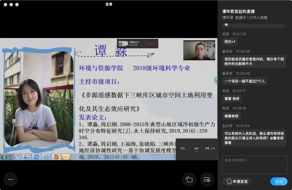 为加强我校研究生科研创新能力培养,鼓励在校研究生积极承担创新型研究课题,4月24日下午,研工部举办了研究生“博闻沙龙”第三期之“创新型科研项目申报那点事儿”线上直播活动。副校长李国军,研工部副部长王燕,研工部董承婷老师以及300余名研究生参加了活动。