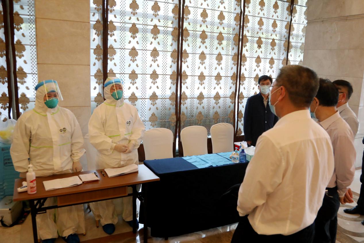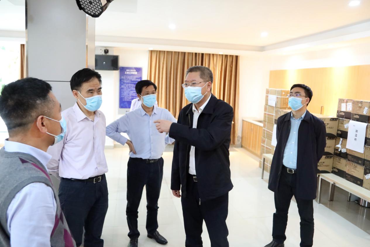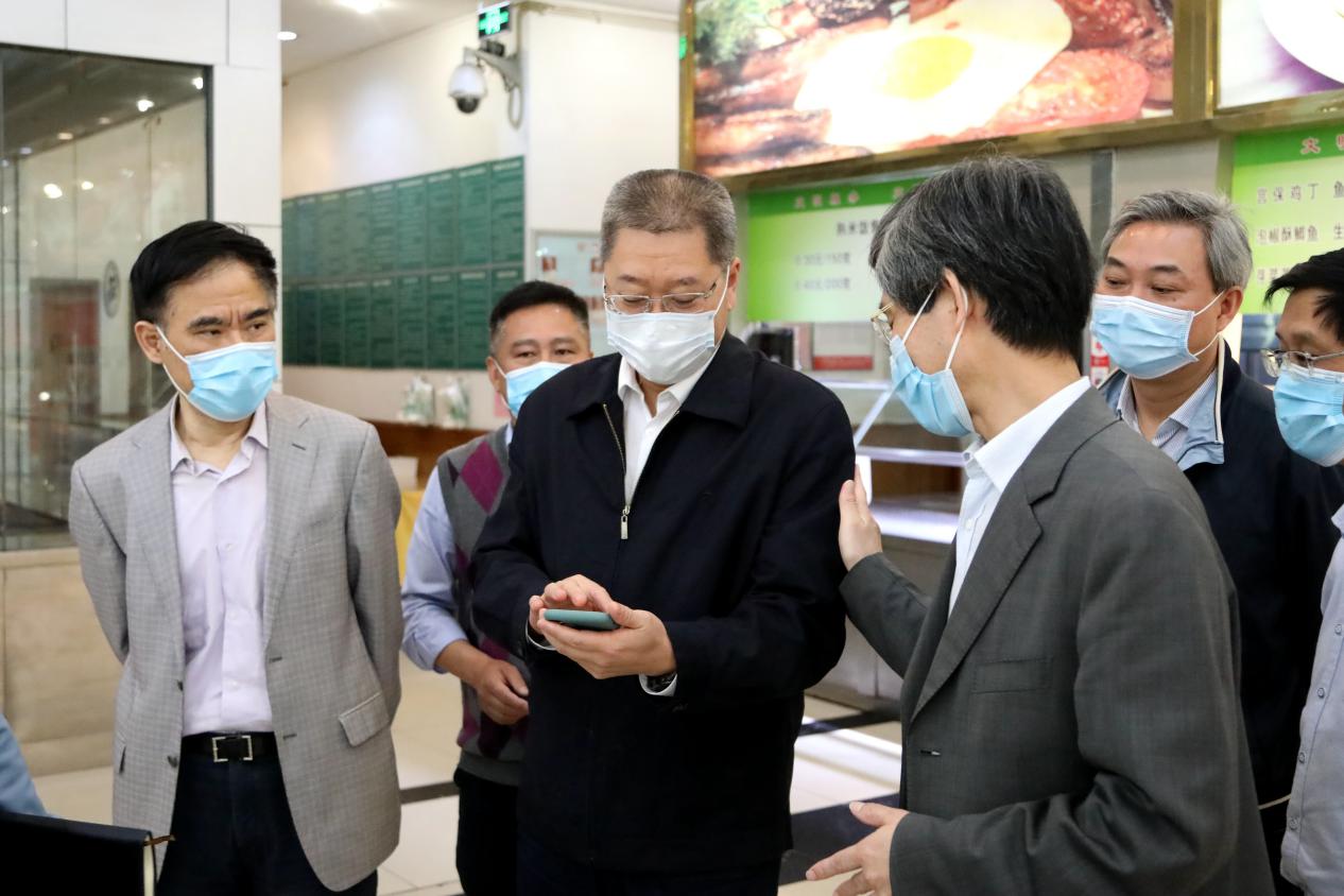 4月29日,市委教育工委书记、市教委主任黄政一行来到重庆工商大学检查疫情防控及开学前准备工作,黄政走进学校食堂,了解食堂取餐用餐、错峰就餐等情况,检查饭菜质量及食品卫生;检查学校开学前防控物资储备和设置隔离点情况,在学校健康观察点向医务人员表示感谢。黄政要求,一定要把疫情防控工作作为当前重中之重的任务,切实保障师生员工的身体健康和生命安全,从严从实从细从快落实好各项防控措施,坚决打赢高校开学复课这场疫情防控阻击战。