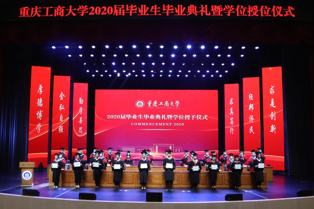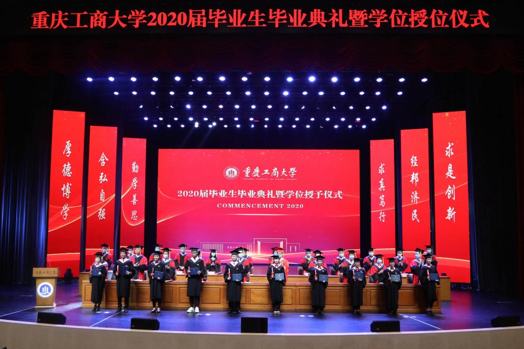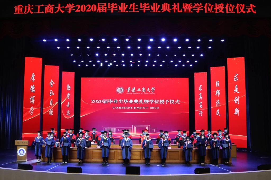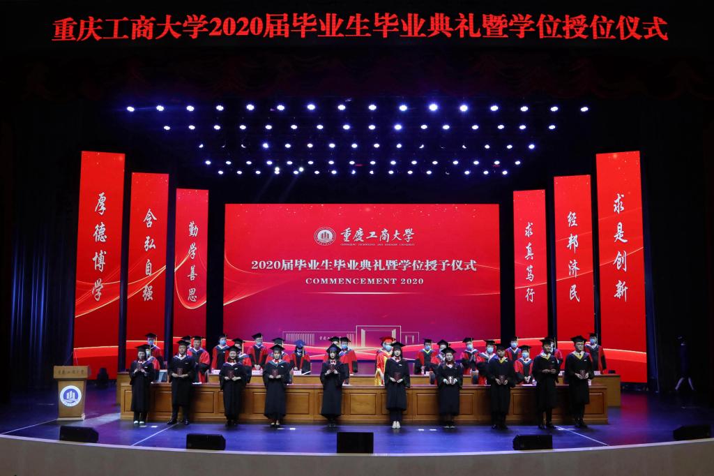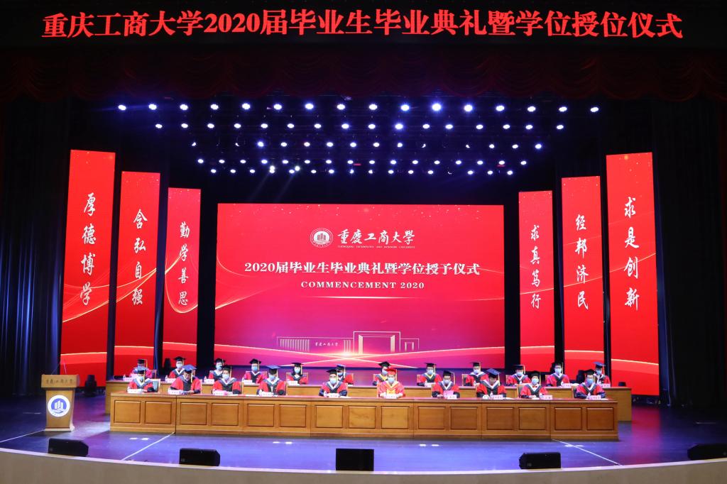 南山风起,栀子花开。6月24日上午,我校2020届毕业生毕业典礼暨学位授予仪式在重庆工商大学剧场隆重举行。疫情当下,今年我校毕业典礼采取“线上+线下”相结合,现场典礼与网络直播同频共振的形式进行。全体在家校领导,学校学位评定委员会委员代表,专家教授代表,校友代表等350余人参加了线下仪式,线上近28万人参加了本次典礼,共同见证6268名本科生和606名研究生顺利获得了学士、硕士和博士学位,踏上人生新的征程。本次毕业生毕业典礼暨学位授位仪式由副校长李国军主持。