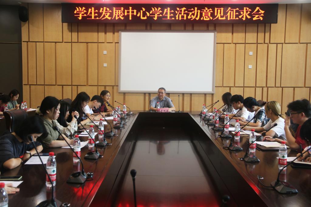 9月11日下午,我校学生发展中心学生活动意见征求会在新图书馆第五会议室顺利召开。副校长李国军,校团委书记杨娟以及来自全校各学院的三十余名学生干部代表参加了会议,共商学生发展中心学生活动建设,共谋学生发展中心发展。会议由校团委副书记胡婧婷主持。