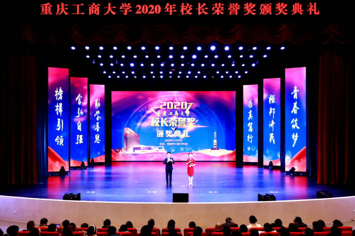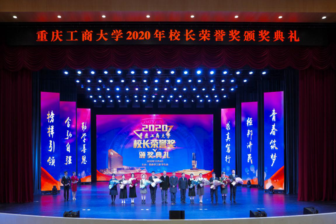 12月4日,2020年重庆工商大学“校长荣誉奖”颁奖典礼在学校剧场隆重举行。经各学院积极推荐申报、工作组审核查验、遴选评委成员、复审答辩会、校内公示、校长审查等环节,最终提交校长办公会审定,评选出了8名个人和2个团队。校长孙芳城、纪委书记周航、副校长李国军参加了颁奖典礼。