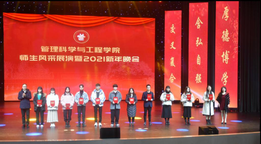 12月20日晚上,管理科学与工程学院师生风采展演暨2021新年晚会在图书馆大剧院举行。校党委副书记宋豫、党委学生工作部部长申卫东、党委组织部副部长于频、党委学工部副部长陈亚惠、校团委副书记胡婧婷出席了本次展演。