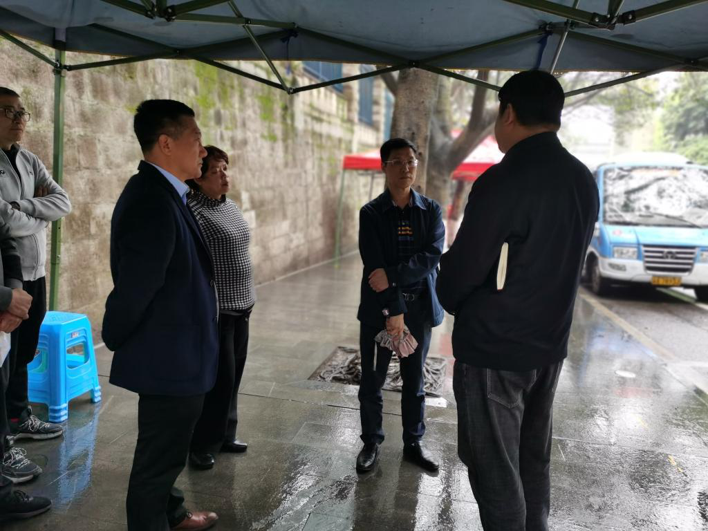 副校长陈兴述在后勤处处长沙云陪同下检查指导幼儿园、校园交通车等工作。