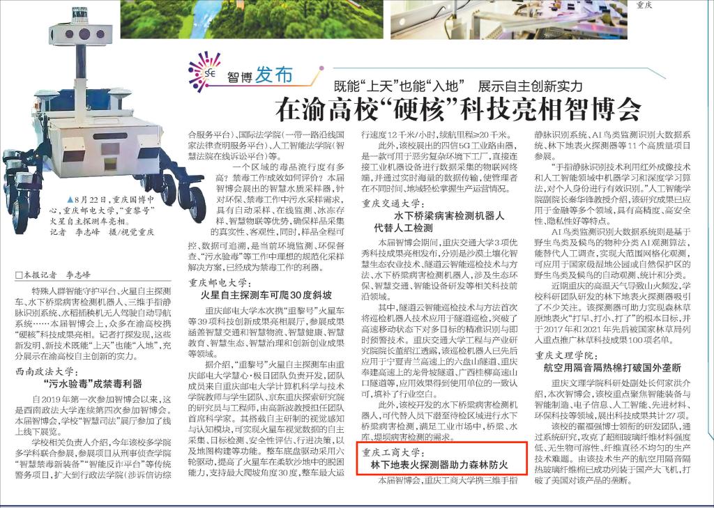 重庆日报、学习强国等媒体报道我校“硬核”科技亮相智博会