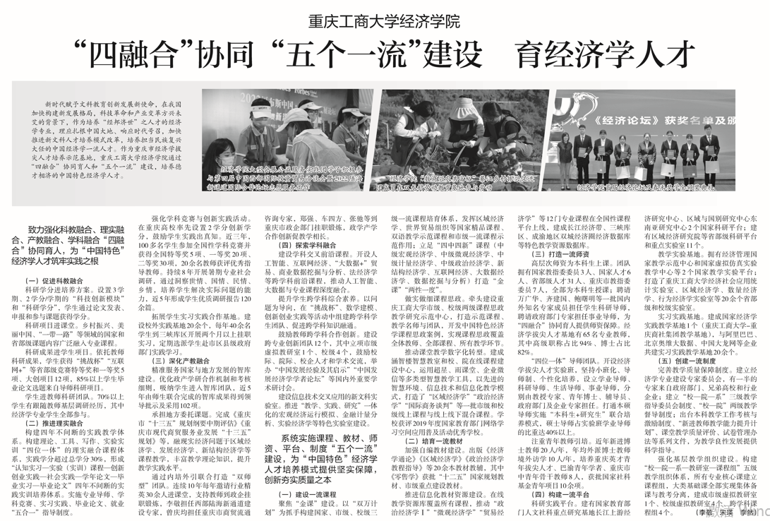 重庆工商大学经济学院“四融合”协同 “五个一流”建设 育经济学人才