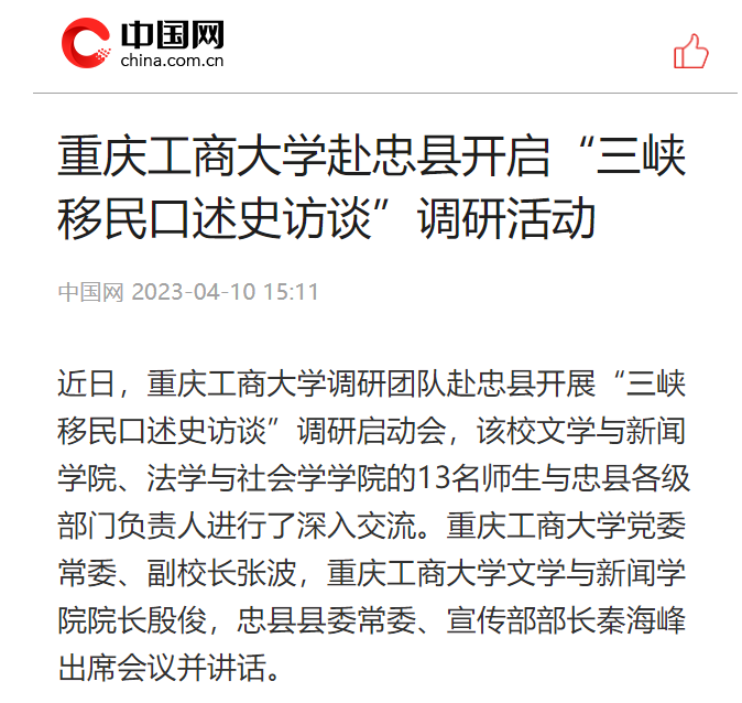 中国网报道学校赴忠县开展“三峡移民口述史访谈”调研活动