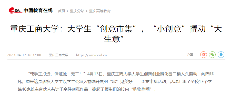 中国教育在线报道我校创意市集活动