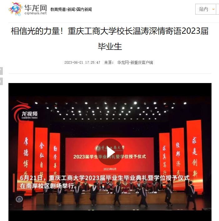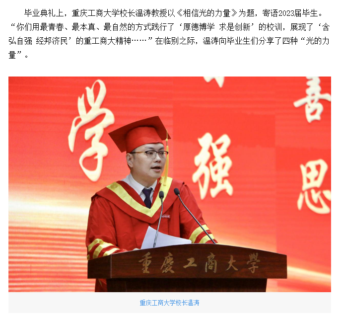 相信光的力量!重庆工商大学校长温涛深情寄语2023届毕业生