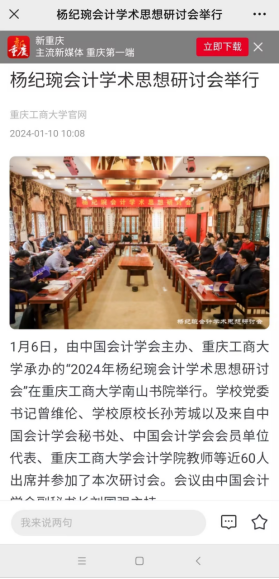 1月6日,由中国会计学会主办、重庆工商大学承办的“2024年杨纪琬会计学术思想研讨会”在重庆工商大学南山书院举行。学校党委书记曾维伦、学校原校长孙芳城以及来自中国会计学会秘书处、中国会计学会会员单位代表、重庆工商大学会计学院教师等近60人出席并参加了本次研讨会。会议由中国会计学会副秘书长刘国强主持。