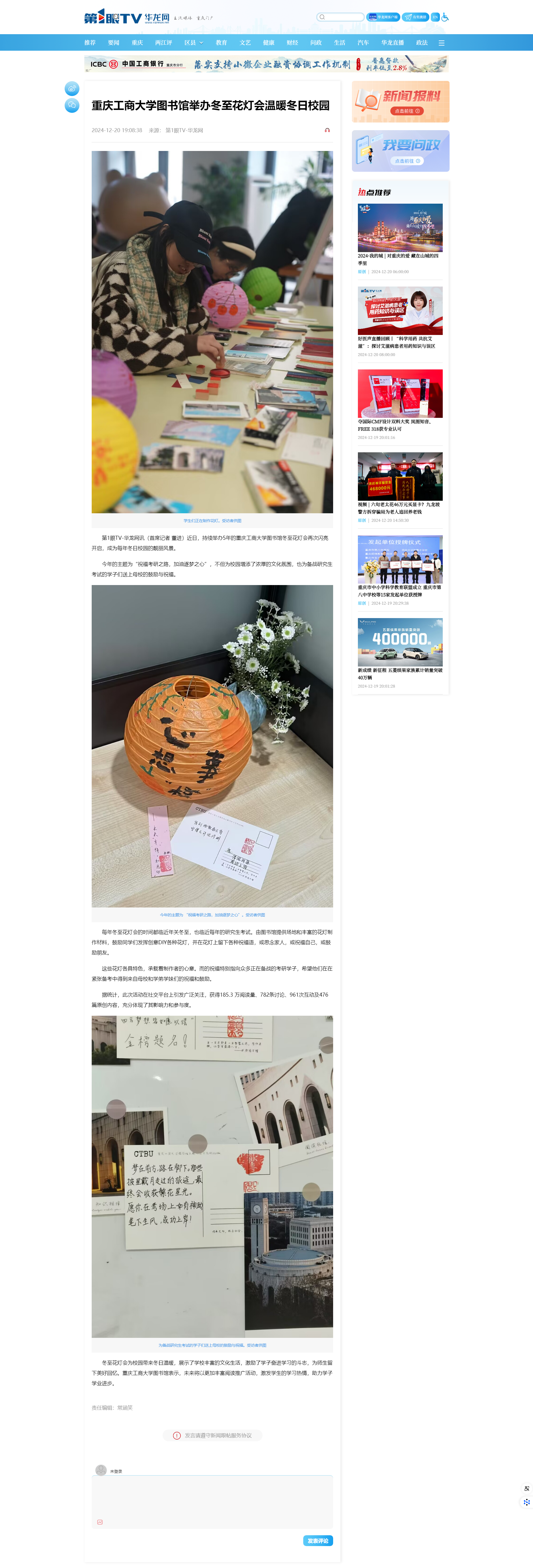 近日,我校图书馆举办了一年一度的冬至花灯会活动,得到广大师生的喜爱,不仅为校园带来冬日温暖,展示了学校丰富的文化生活,也激励了学子奋进学习的斗志,为师生留下美好回忆。