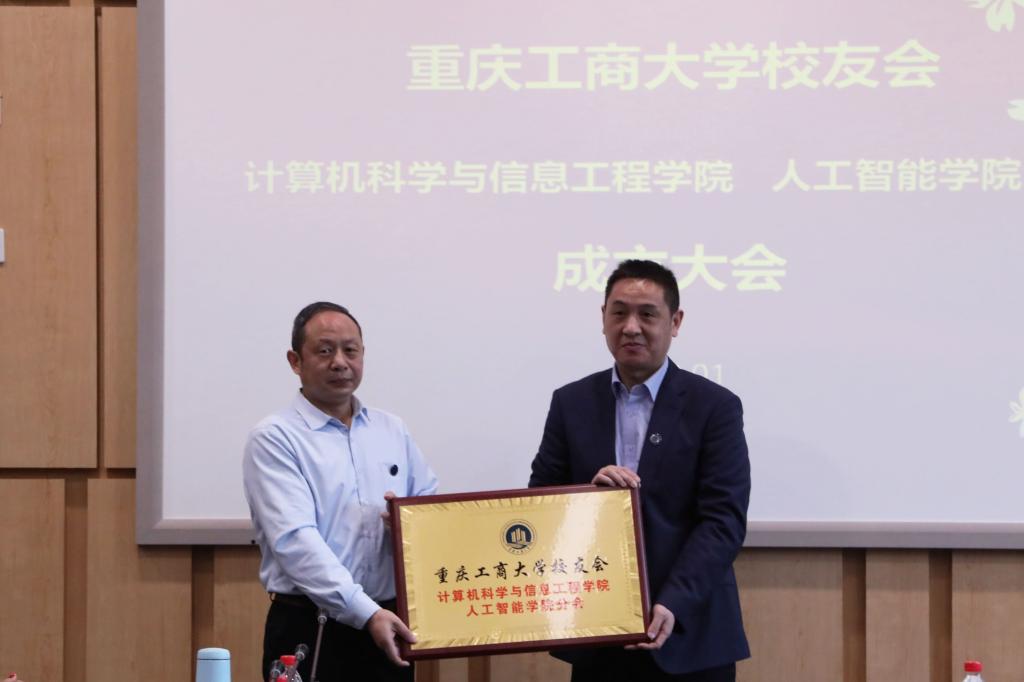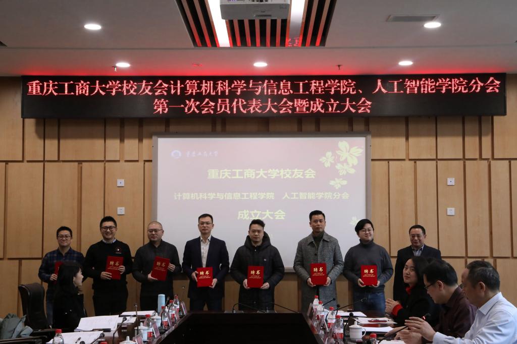成立大会在何希平院长的致辞中拉开帷幕。他从学科、专业和平台建设、基础研究和工程科学研发、人才队伍建设、学生学科竞赛、国际合作等方面回顾了学院近年来的建设发展情况;学院学工办副主任向巧代表筹备组向与会人员汇报了校友分会各项筹备工作的具体情况;学校校友办张如强老师向大会宣读了《关于同意成立重庆工商大学校友会计信学院分会的批复》;参会校友审议并通过了《重庆工商大学校友会计信学院分会章程》、《重庆工商大学校友会计信学院分会会长、名誉会长、执行会长、副会长、秘书长、副秘书长建议名单》;蒋年韬为校友分会授牌,至此,计信学院校友分会正式宣告成立。接下来,与会领导嘉宾上台为新当选的分会负责人和理事一一颁发聘书。新当选的执行会长,98级重庆如泰科技有限公司董事长印强在发言中表示,感谢校友们的信任,他将在今后的校友分会工作中,严格遵守校友分会章程,认真履行职责,团结各位校友,开拓进取,竭尽所能,为校友和学院的发展服务,不辜负母校和校友们的殷切期望。
