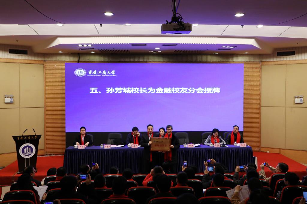 会上,金融校友会筹备组负责人唐寒鸣校友从背景过程、分会的宗旨性质和人员构成、工作安排报告了金融校友会筹备工作情况。周勃副会长宣读了《关于同意成立重庆工商大学校友会金融校友会的批复》。会议全票通过了《重庆工商大学金融校友会章程》的审议和金融校友会会长、副会长、秘书长、副秘书长、常务理事建议名单的审议。孙芳城校长为金融校友会授牌,并为当选的会长、副会长、秘(副)书长、常务理事颁发了聘书。周端端校友宣读了来自北京大学、西南财经大学、重庆大学校友会的贺信,金融会会长王敬春宣读了地方校友分会的贺信。